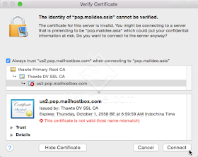 6. ติ๊กเลือก Always trust "us2.imap.mailhostbox.com' when connecting to "pop.(ชื่อโดเมน).com